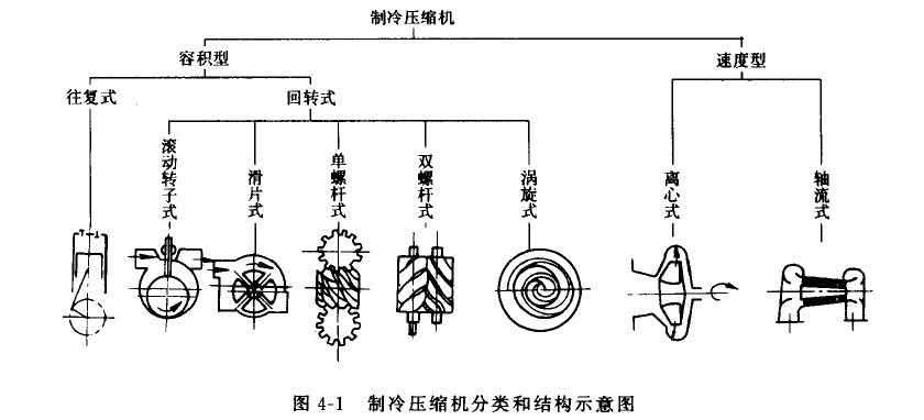 圖4—1表示了壓縮機分類及其結(jié)構(gòu)示意圖。