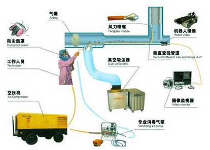 1. 用裝有攝相頭的機器人進(jìn)入管道拍攝記錄風(fēng)管內(nèi)污染狀況;