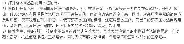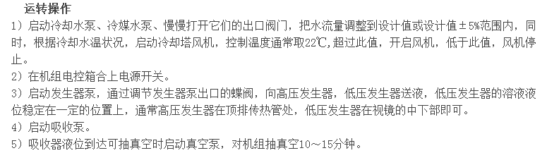 溴化鋰吸收式制冷機(jī)運(yùn)轉(zhuǎn)過程中,機(jī)房內(nèi)應(yīng)有操作人員值班,并要嚴(yán)格遵守操作規(guī)程,確保機(jī)組安全正常運(yùn)行。