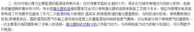 一. 是因?yàn)殡娏A(chǔ)設(shè)施建設(shè)跟不上,電力很緊張,造成供需矛盾,只好使用高污染、低效率的小型燃煤鍋爐就近制備蒸汽來(lái)驅(qū)動(dòng)溴化鋰蒸汽型機(jī)組。