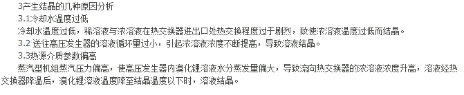 溴化鋰吸收式制冷機組是以水為制冷劑,溴化鋰溶液為吸收劑的制冷設(shè)備。在溴冷機運行過程中,經(jīng)常發(fā)生溴化鋰溶液結(jié)晶故障,導致制冷能力下降。因此,機組操作人員能熟練分析產(chǎn)生結(jié)晶的原因及其排除方法是非常重要的。