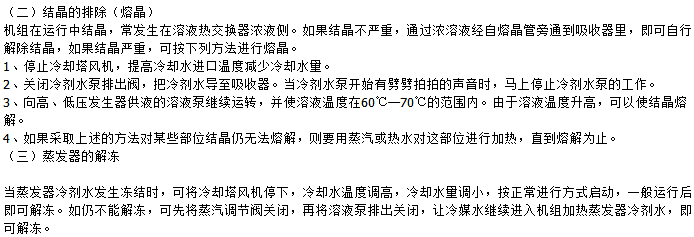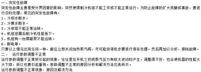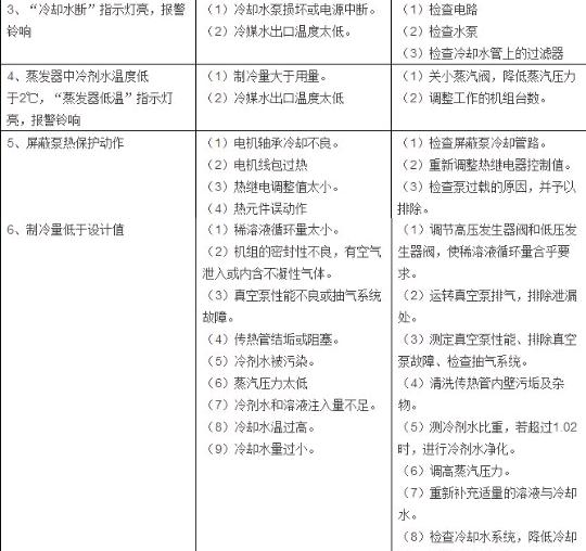 溴化鋰吸收式制冷機在運轉過程中,受到外界因素的影響和操作不當,會引出機組不能正常工作。使機組不能正常工作的常見故障有:突發(fā)性故障、運行參數調整不正常和其他主要故障。