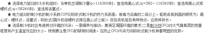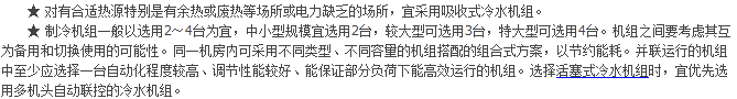 ★ 對(duì)大型集中空調(diào)系統(tǒng)的冷源,宜選用結(jié)構(gòu)緊湊、占地面積小及壓縮機(jī)、電動(dòng)機(jī)、冷凝器、蒸發(fā)器和自控組件等都組裝在同一框架上的冷水機(jī)組。對(duì)小型全空氣調(diào)節(jié)系統(tǒng),宜采用直接蒸發(fā)式壓縮冷凝機(jī)組。