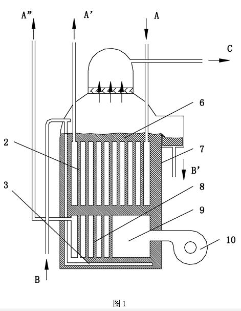 [0003] 本實(shí)用新型的目的在于克服上述不足,提供一種能解決機(jī)組停機(jī)結(jié)晶問(wèn)題的帶通風(fēng)管的排熱利用型溴化鋰吸收式制冷機(jī)用補(bǔ)燃發(fā)生器。