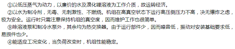 溴化鋰吸收式制冷機(jī)具有如下優(yōu)點(diǎn):