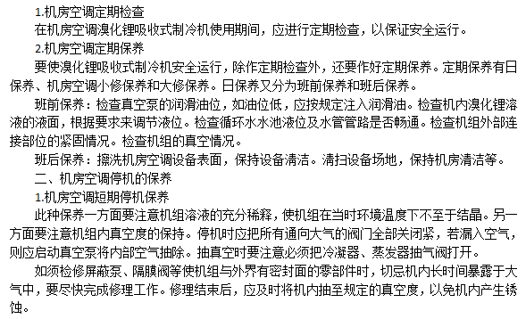 機(jī)房空調(diào)溴化鋰制冷機(jī)檢修和保養(yǎng)