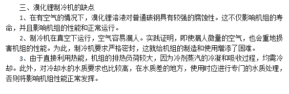 溴化鋰水溶液在工作時的缺點