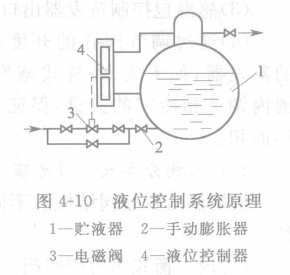 圖4-10為液位控制系統(tǒng)圖。是通過液位信號(hào)發(fā)送器啟閉電磁閥,控制進(jìn)液來調(diào)節(jié)液位。