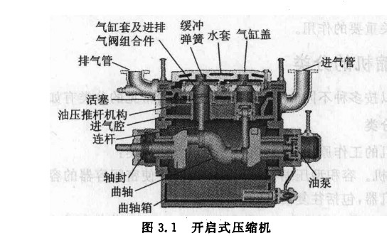 開啟式壓縮機(jī)一曲軸功率輸入端伸出機(jī)體之外,并通過傳動(dòng)裝置和原動(dòng)機(jī)相連,其結(jié)構(gòu)如圖3.1所示。