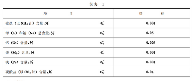 3 取消了部分企業(yè)標(biāo)準(zhǔn)中規(guī)定的銅和鋇含量兩項指標(biāo) 并根據(jù)用戶要求增加了碳酸鹽指標(biāo)
