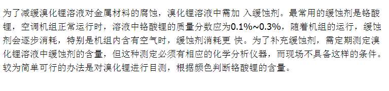 溴化鋰吸收式制冷機(jī)組(冷熱水機(jī)組)所用的制冷劑是水,通常稱為冷劑水,在機(jī)組運(yùn)行時(shí),或多或少會(huì)有少量溴化鋰進(jìn)入蒸發(fā)器的冷劑水中,由于溴化鋰不會(huì)蒸發(fā),而冷劑水在不斷發(fā),溴化鋰將在蒸發(fā)器中積累下來,這種現(xiàn)象稱為冷劑水污染。發(fā)生冷劑水污染時(shí),機(jī)組性能下降、制冷量不足。