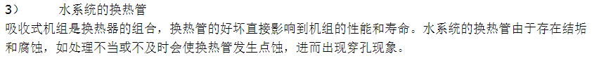 為了防止溴化鋰溶液對(duì)機(jī)體金屬的腐蝕,必須使溶液中的緩蝕劑保持一定的含量,及時(shí)分析、調(diào)整溶液成分是延長(zhǎng)機(jī)組壽命的保障。
