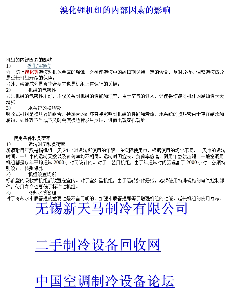 溴化鋰機(jī)組的內(nèi)部因素的影響