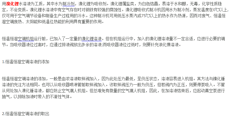 恒溫恒濕空調(diào)溴化鋰溶液的添加和取出操作