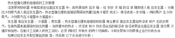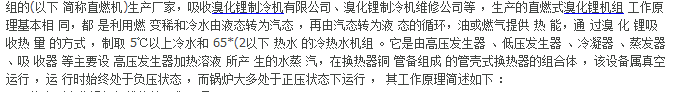 近幾年我 國電力緊張帶來的燃氣(燃油 )直燃機 在空調 溫,達到制冷效果。而濃溶液經布液裝置直接分配 到吸 收制冷 系統(tǒng) 中被 廣泛看好和應用,目前 ,國內主要溴化鋰 吸 器 ,將蒸 發(fā) 吸收器中產生的大量水蒸汽吸收 ,濃溶液變成收式直燃機